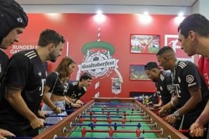 活动期间,主办方还在美食广场的大屏幕上直播了拜仁对阵多特的德甲比赛。卢西奥与多位身着拜仁球衣的巴西当地网红共同观看了这场焦点战。拜仁吉祥物伯尼也一同来到了巴西。
