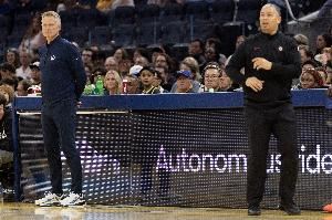 勇士的体系则明白得很:传切嘛。 本季的新花样,主要是库明加:库明加本季至今场均18分(不新鲜)8篮板(哦?!)以及全队第四的4助攻。 库里跑递手比去年多了;吉米依然是库里不在时的主控,但库明加的定位改变:之前他总是单侧强攻手,本季搭配首发时,他经常与库里形成双上线:弱侧正面突袭篮筐,玩递手,玩二人转。 即:追梦和吉米到翼侧去,让库明加在上线玩。 防守端,库明加经常是领防:本季他防卢卡12投16分,防戈登6投13分,防莫兰特3投6分,防穆雷3投6分——他防的对手53投70分,命中率53%,但这是勇士肯付出的代价。库明加的协防不行,就让他去领防,让追梦(和霍福德/波斯特)保护内线吧。