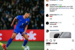 赛后,法国后卫萨利巴更新社媒晒照庆祝晋级世界杯,写道:目标达成✅明年夏天世界杯见。加油,法国队