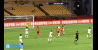 现场字幕给出VAR介入了此次判罚,可能要判给广西点球,然而现场事故不断。